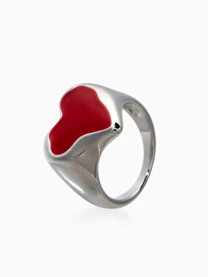 Кольцо "Сердце" корейский стиль, размер 17, цвет бордовый в серебре