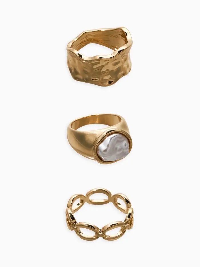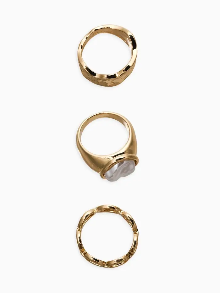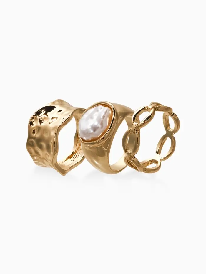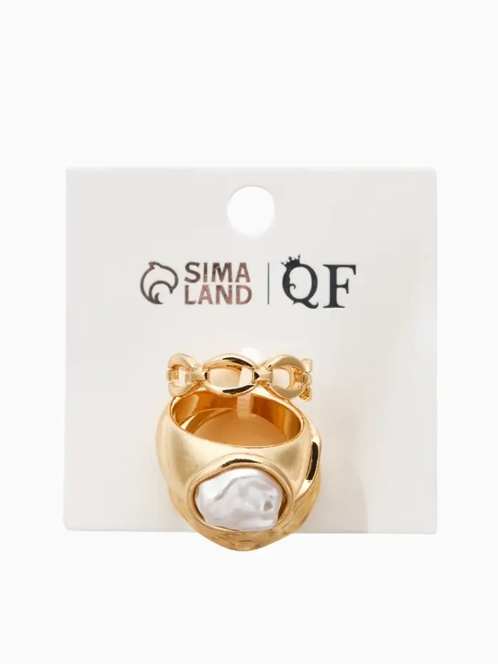 Набор колец 3 шт "Новый стиль" жемчуг,цепь, размер МИКС, цвет белый в золоте