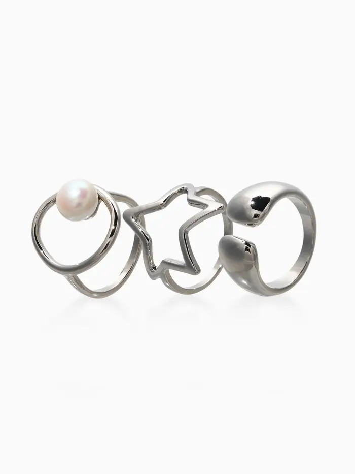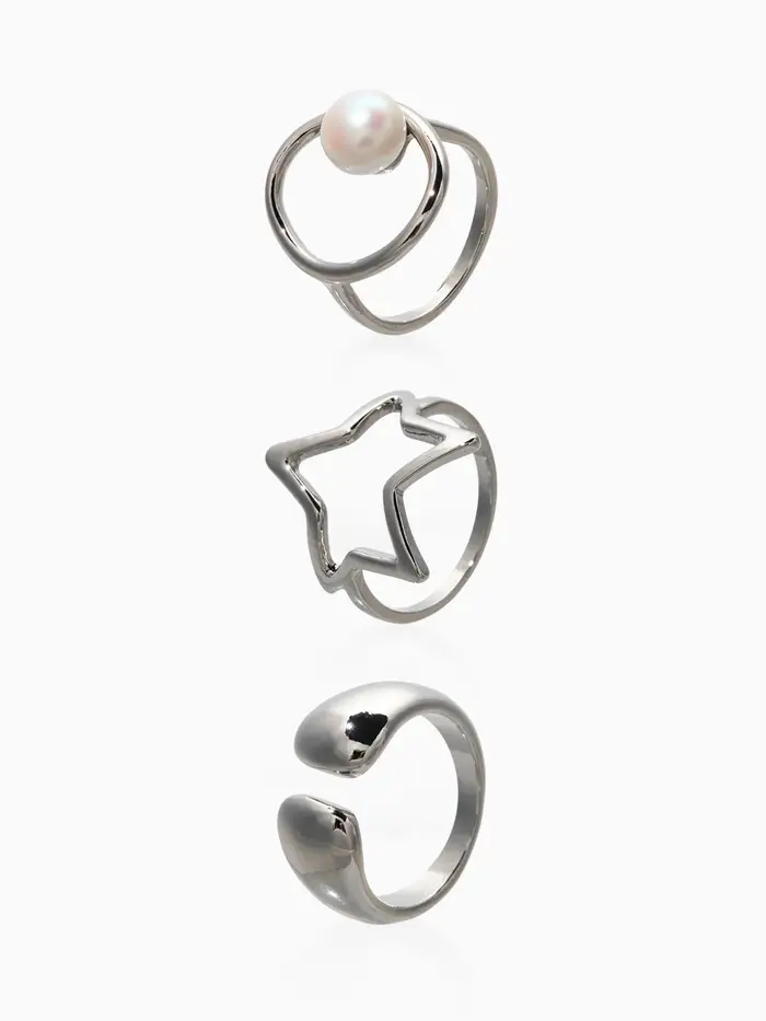 Набор колец 3 шт "Новый стиль" космос, размер МИКС, цвет белый в серебре