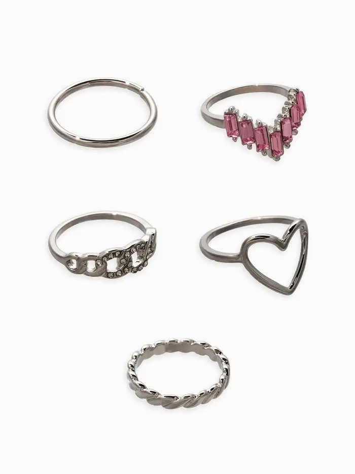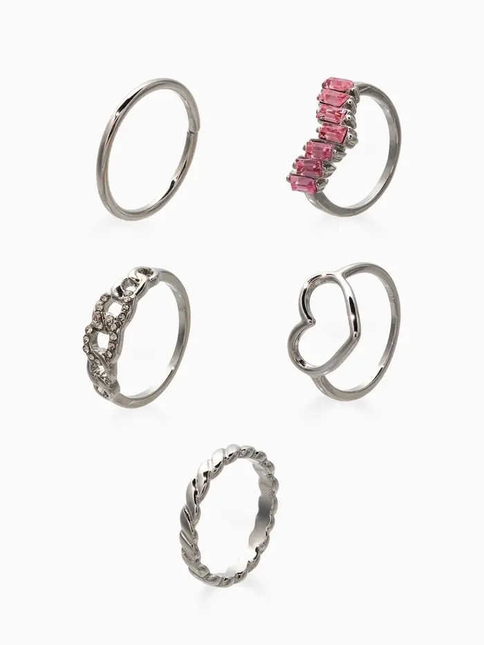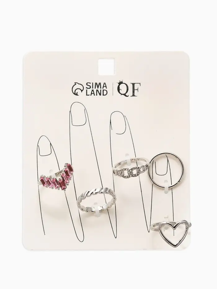 Набор колец 5 шт "Новый стиль" сердца,бесконечность, р-р МИКС, цвет бело-розовый в серебре 1093709