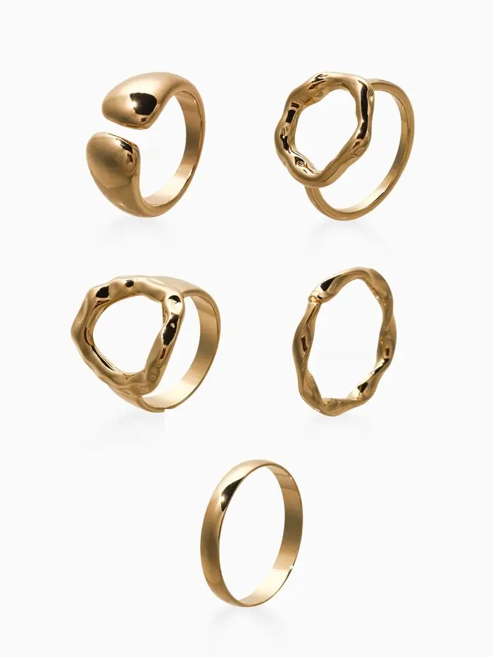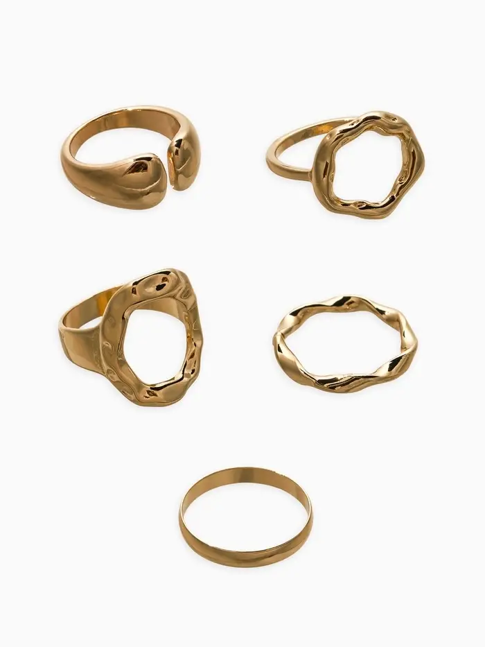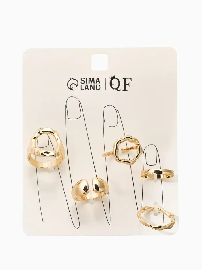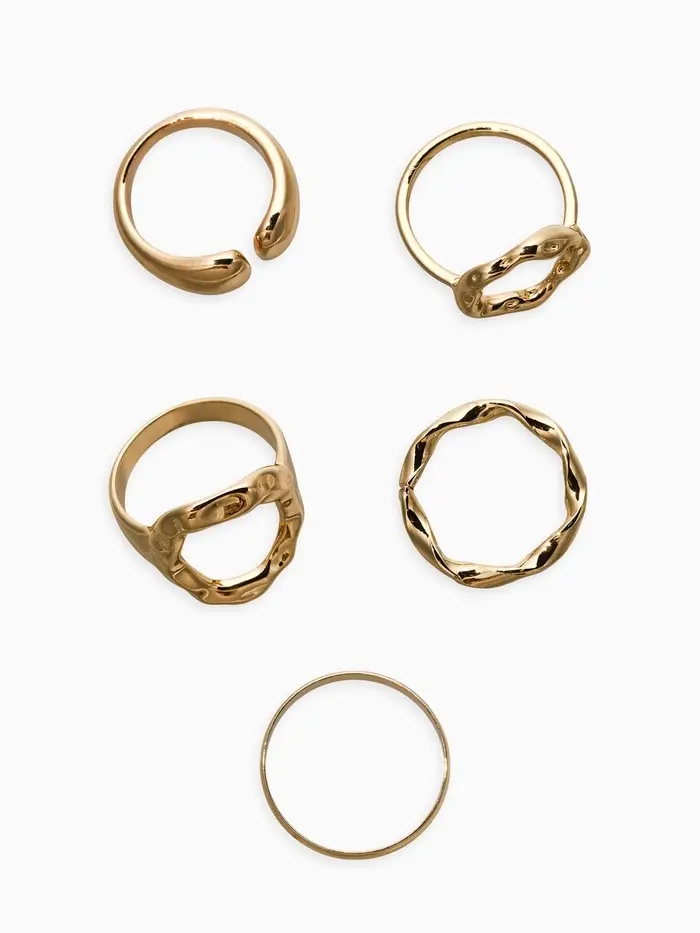 Набор колец 5 шт "Новый стиль" мятый, размер МИКС, цвет золото