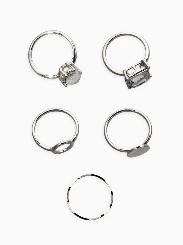 Набор колец 5 шт "Новый стиль" кристалл, размер МИКС, цвет белый в серебре