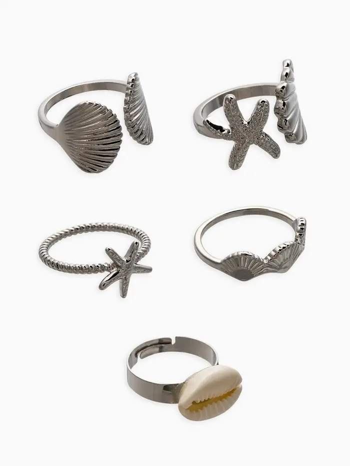 Набор колец 5 шт "Новый стиль" море, размер МИКС, цвет белый в серебре