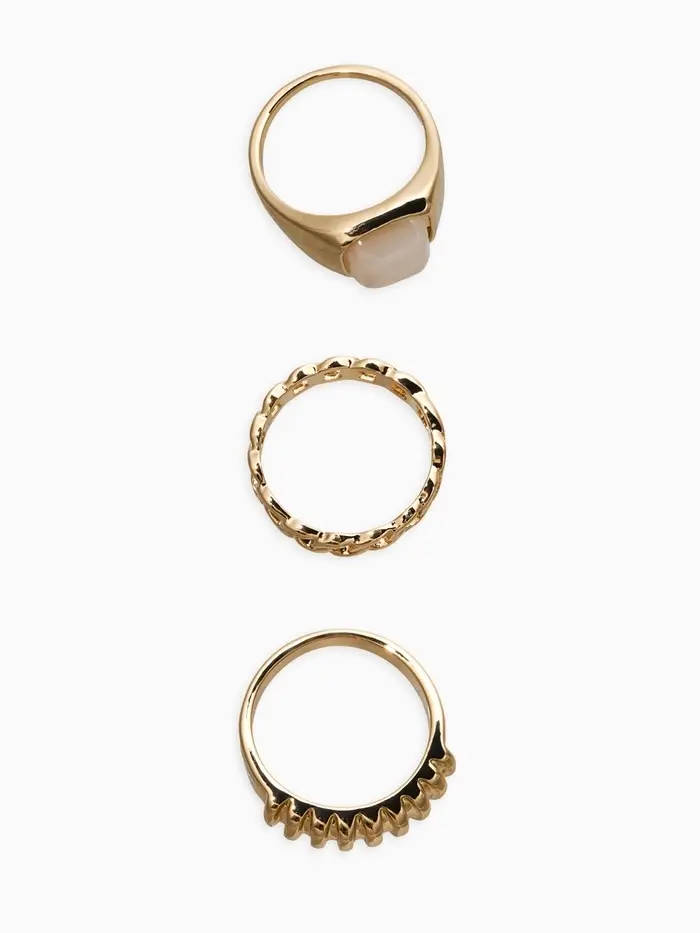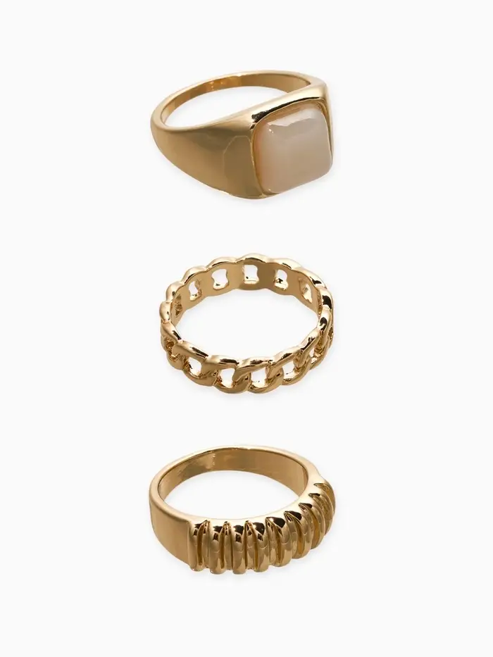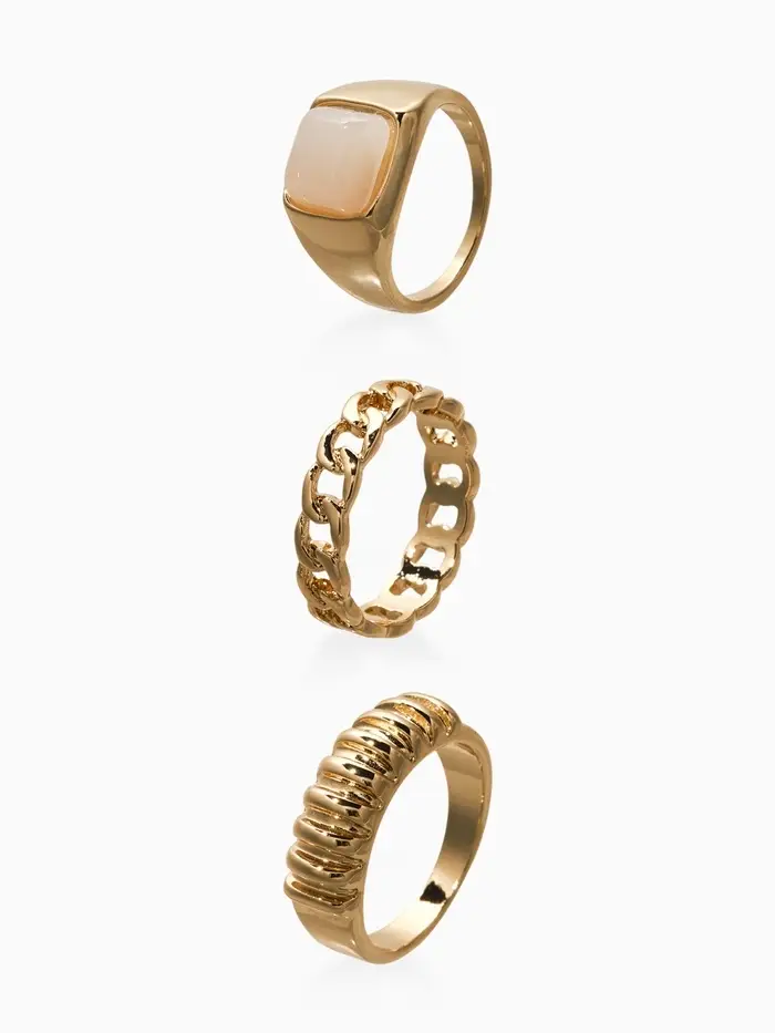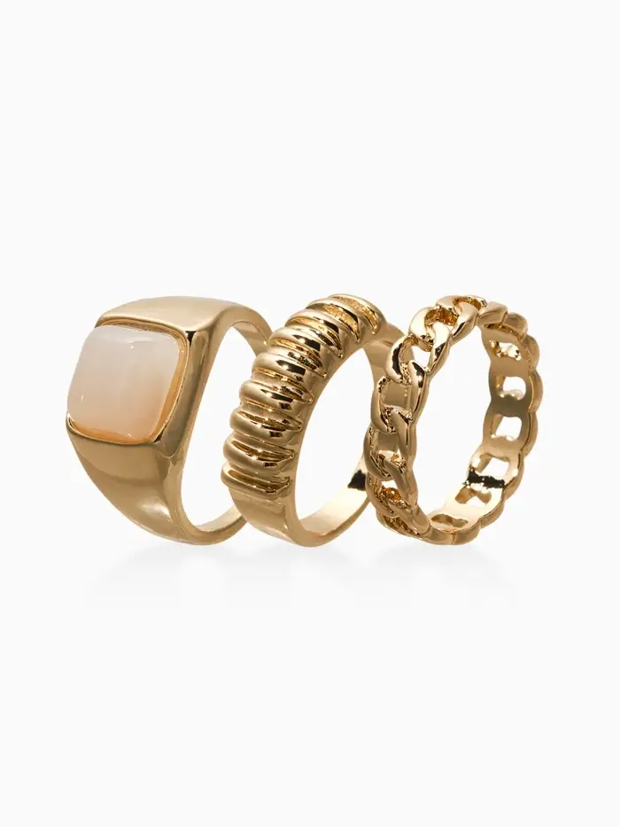 Набор колец 3 шт "Новый стиль" цепь, размер МИКС, цвет белый в золоте