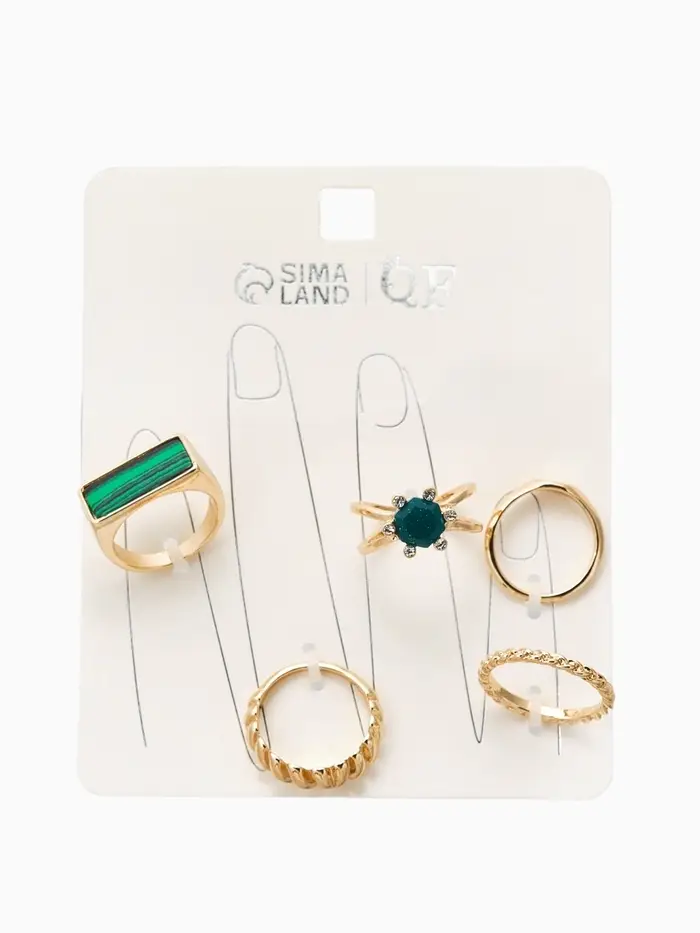 Набор колец 5 шт "Новый стиль" натурель, размер МИКС, цвет изумрудный в золоте