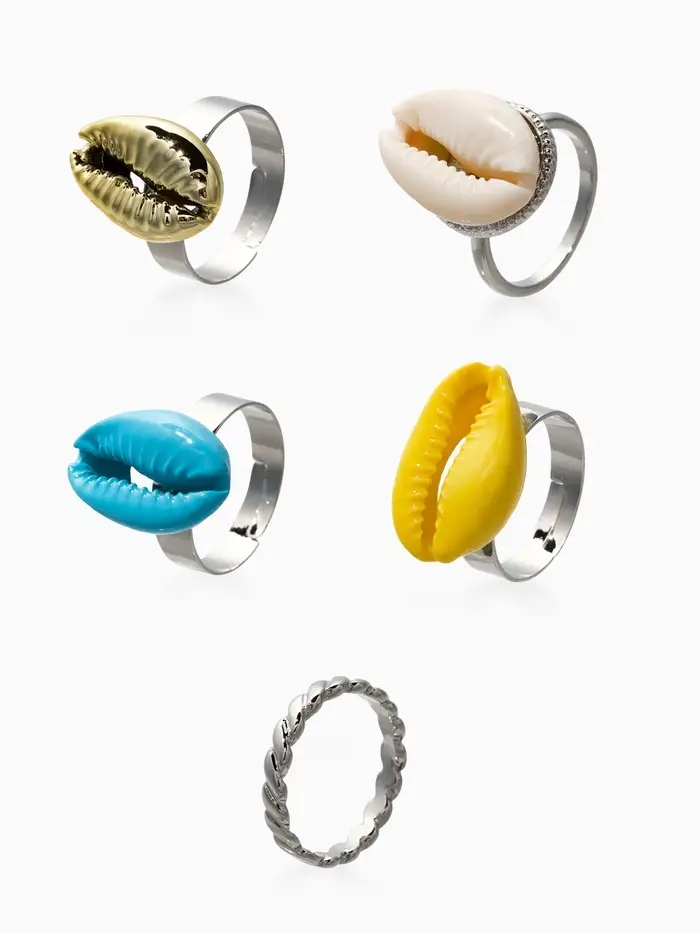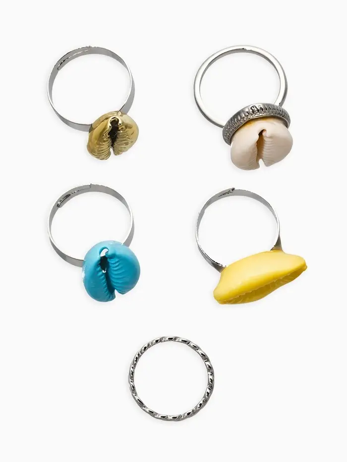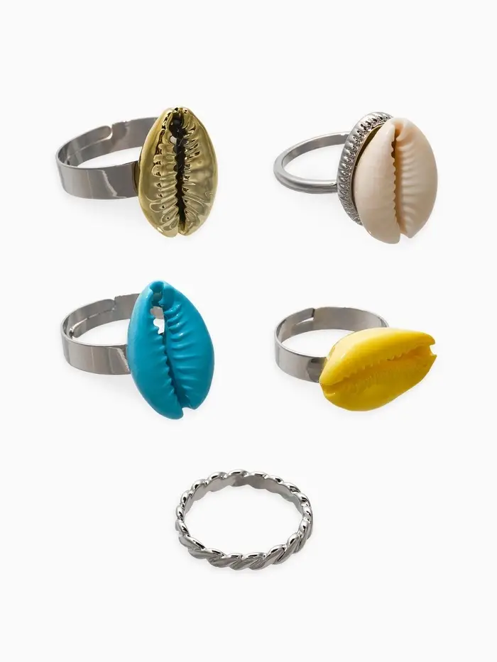 Набор колец 5 шт "Новый стиль" ракушки, размер МИКС, цветные в серебре