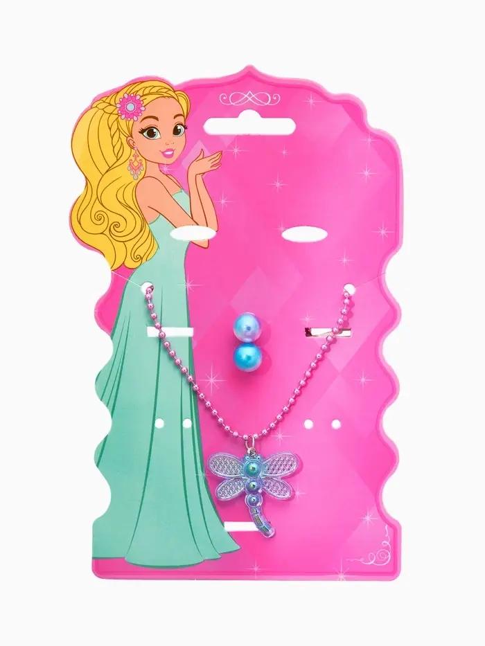 Набор детских украшений "Выбражулька" стрекоза, 2 предмета: кулон, пусеты, цвет голубой