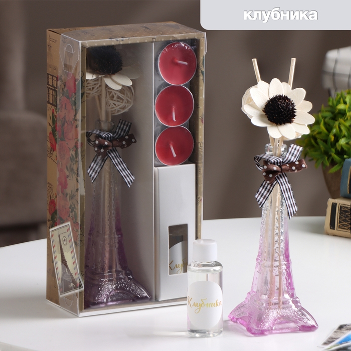 Набор подарочный "Париж" (диффузор и свечи) клубника, "Богатство Аромата" 8 марта