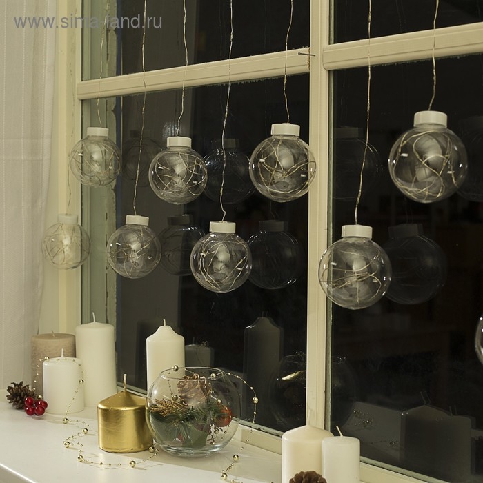 Гирлянда «Бахрома» 2.5 × 0.7 м роса с насадками «Шарики», IP20, серебристая нить, 150 LED, свечение белое, 12 В