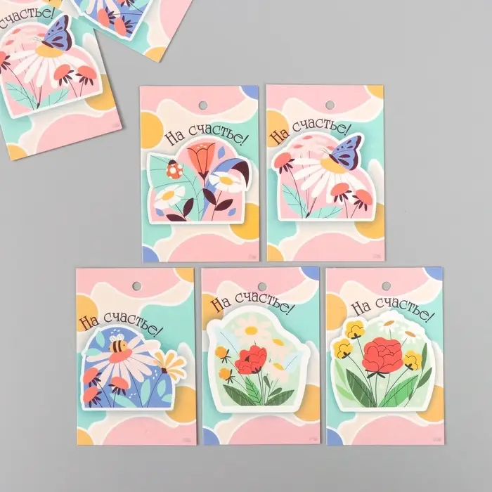 Бирка картон "Цветы 05" набор 10 шт (5 видов) 4х6 см