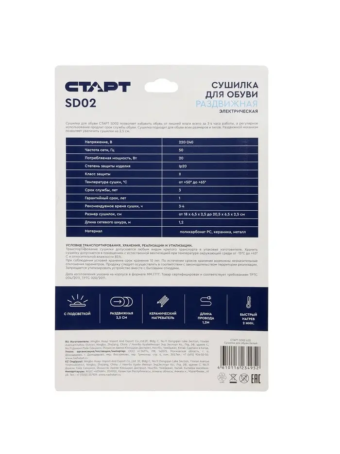 Сушилка для обуви «Старт» SD02, 13 Вт, UV, арома - пластик, керамика, шнур 1.2 м