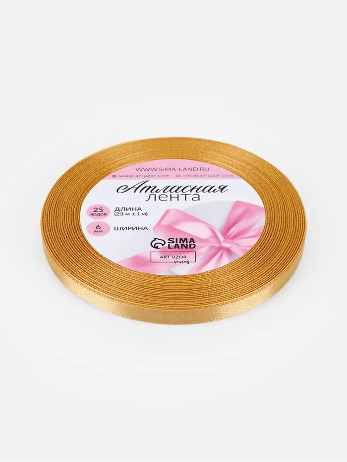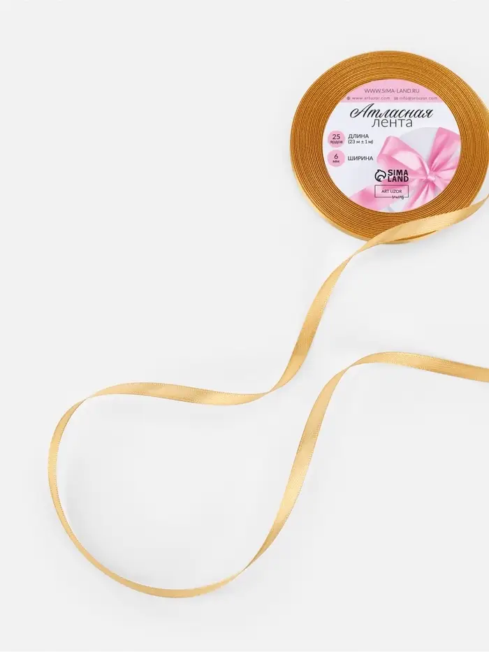 Лента атласная, 6 мм, 23±1 м, золотисто-бежевая №186