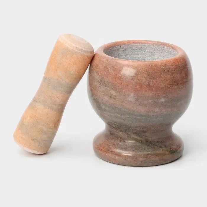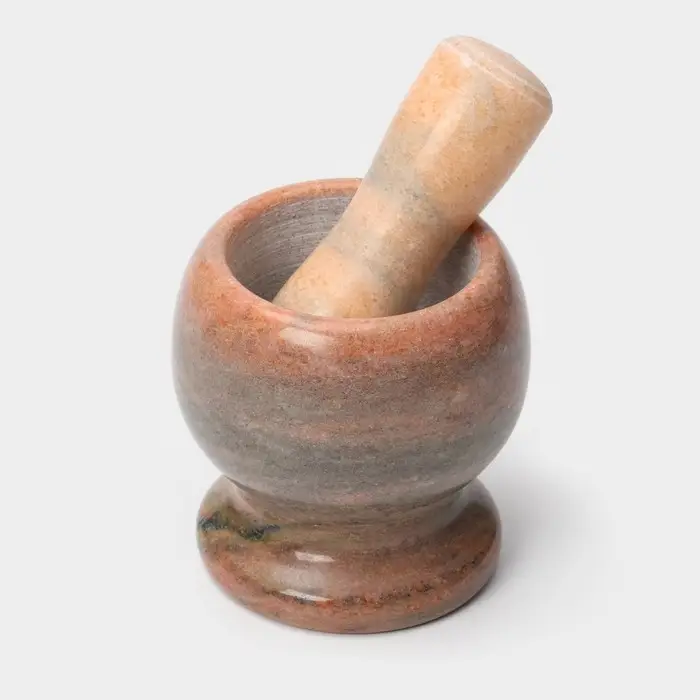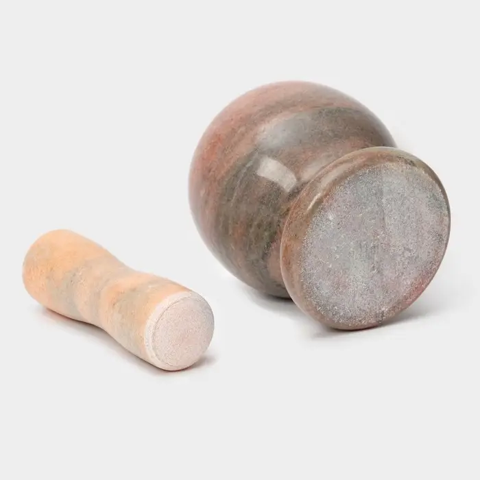 Ступка с толкушкой «Мрамор», из натурального камня, цвет коричневый