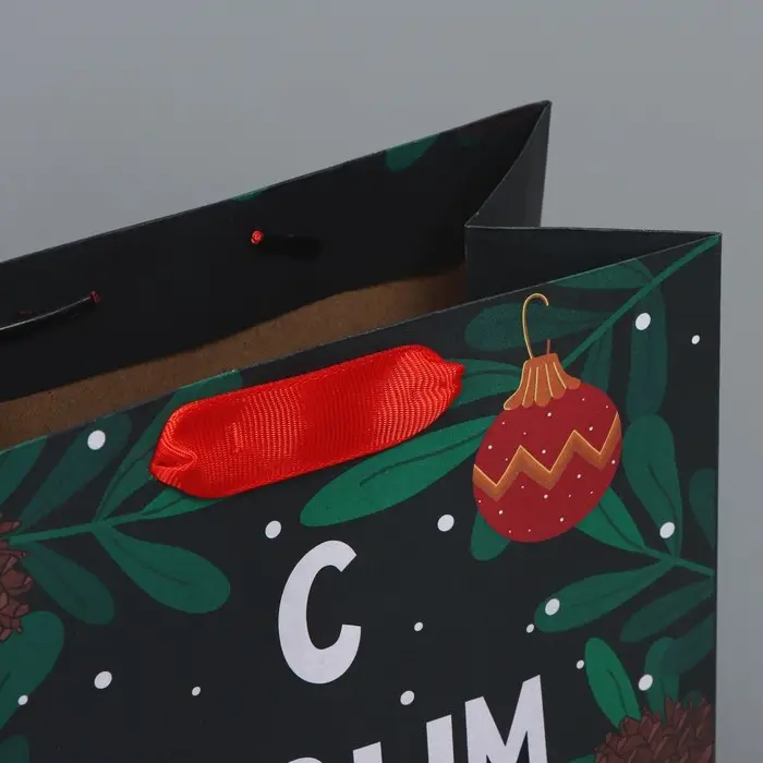 Пакет подарочный новогодний крафтовый «Green», MS 18 х 23 х 10 см