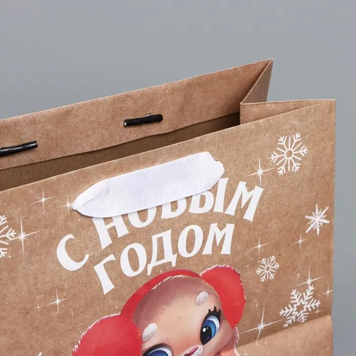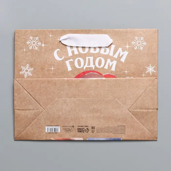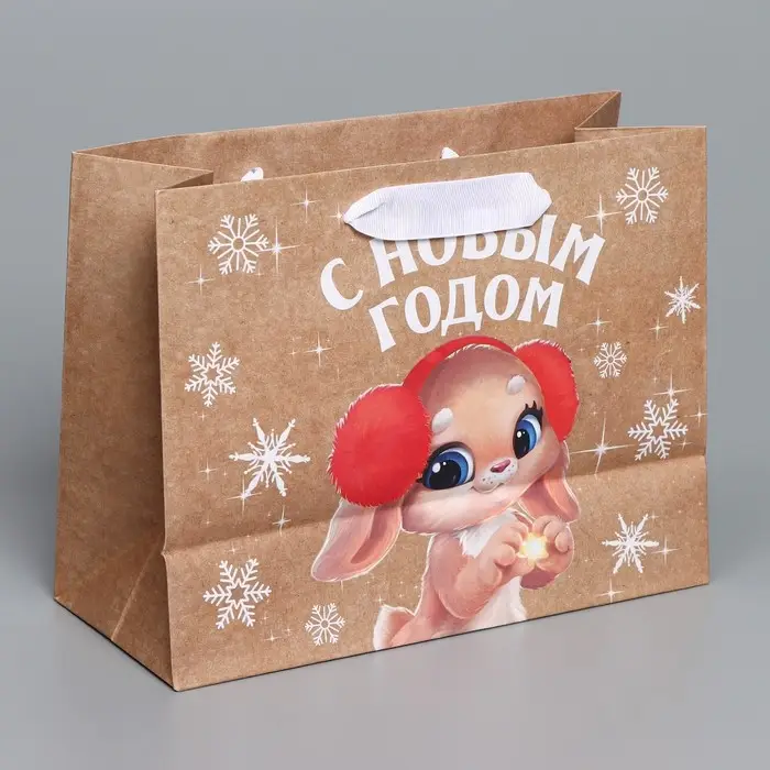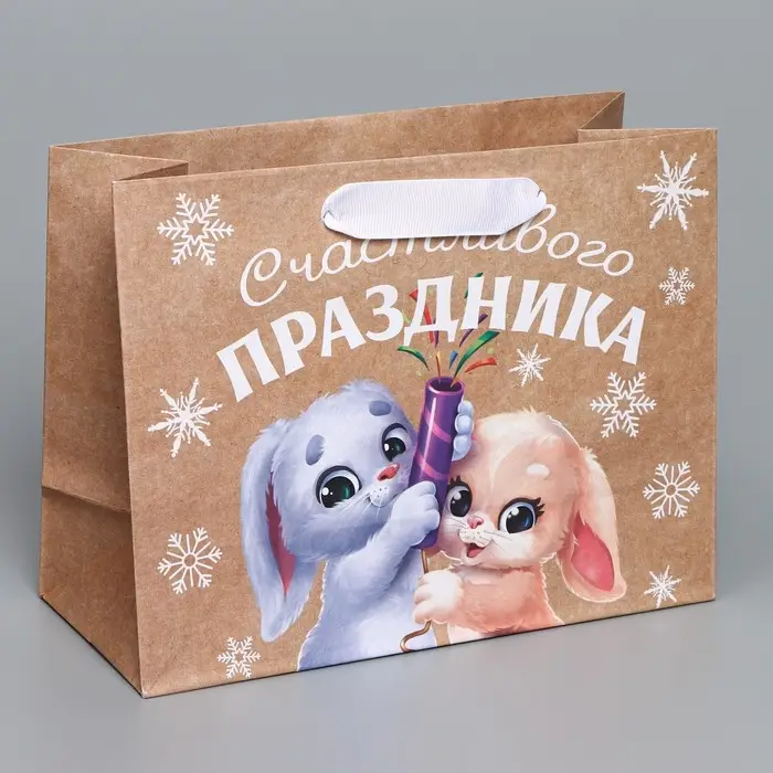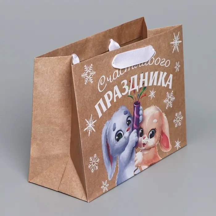 Пакет подарочный новогодний крафтовый горизонтальный «Хлопушки», MS 23 х 18 х 10 см