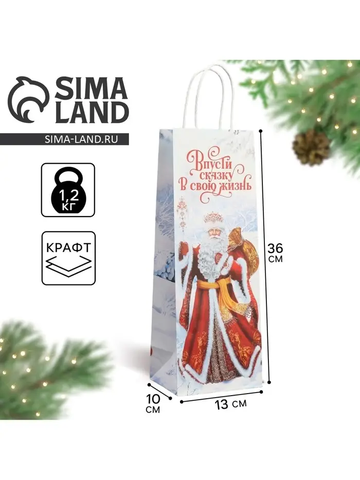 Пакет под бутылку «Впусти сказку в свою жизнь», 13 x 36 x 10 см