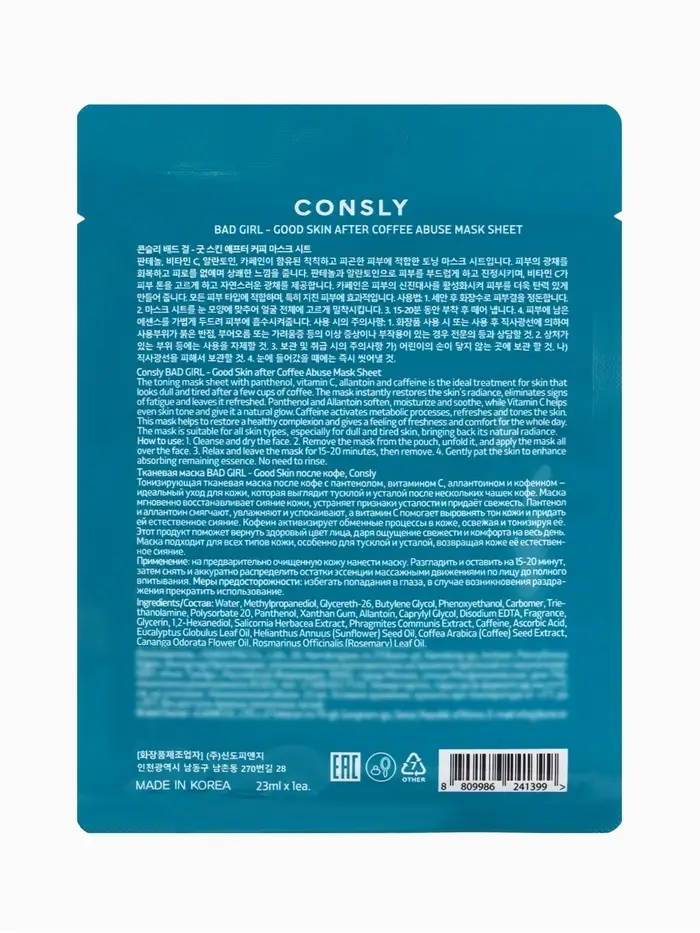 Маска Consly «После кофе» — удобное решение для быстрого тонизирования кожи и придания лицу свежего, ухоженного вида.