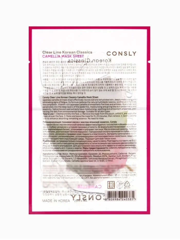 Тканевая маска с маслом японской камелии Consly «Гладкость и эластичность», 23 мл