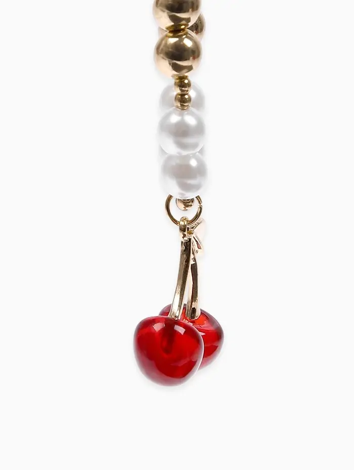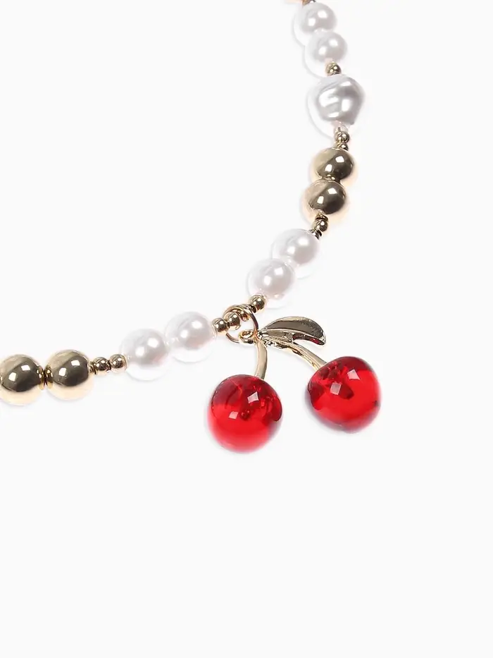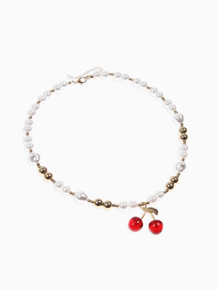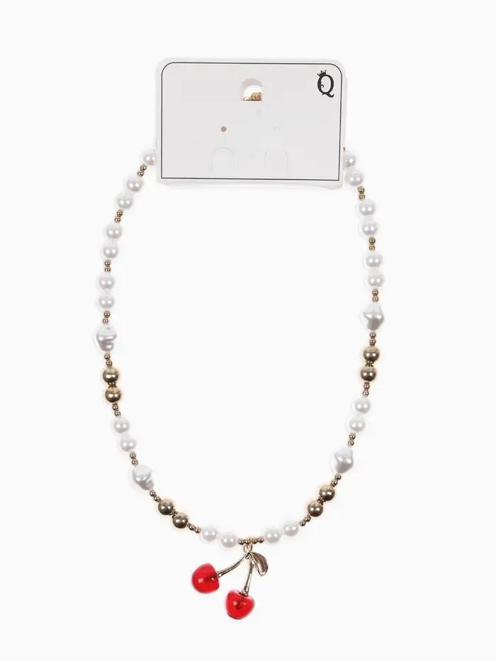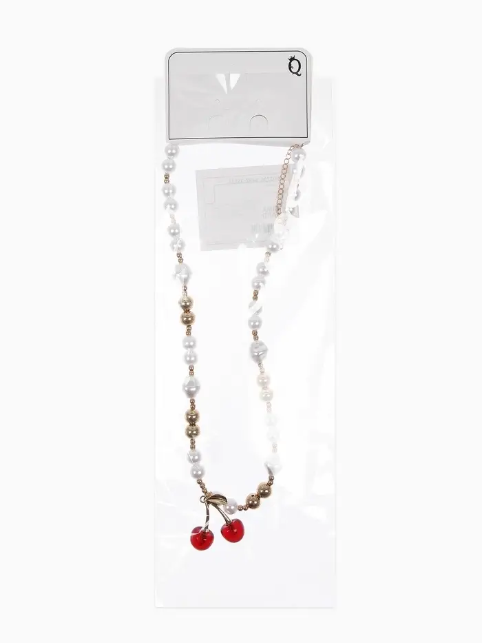 Кулон на жемчужных бусах "Вишня", цвет белый в золоте