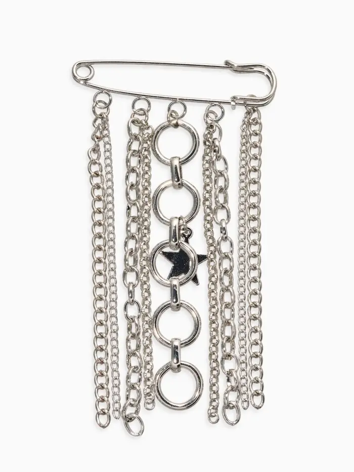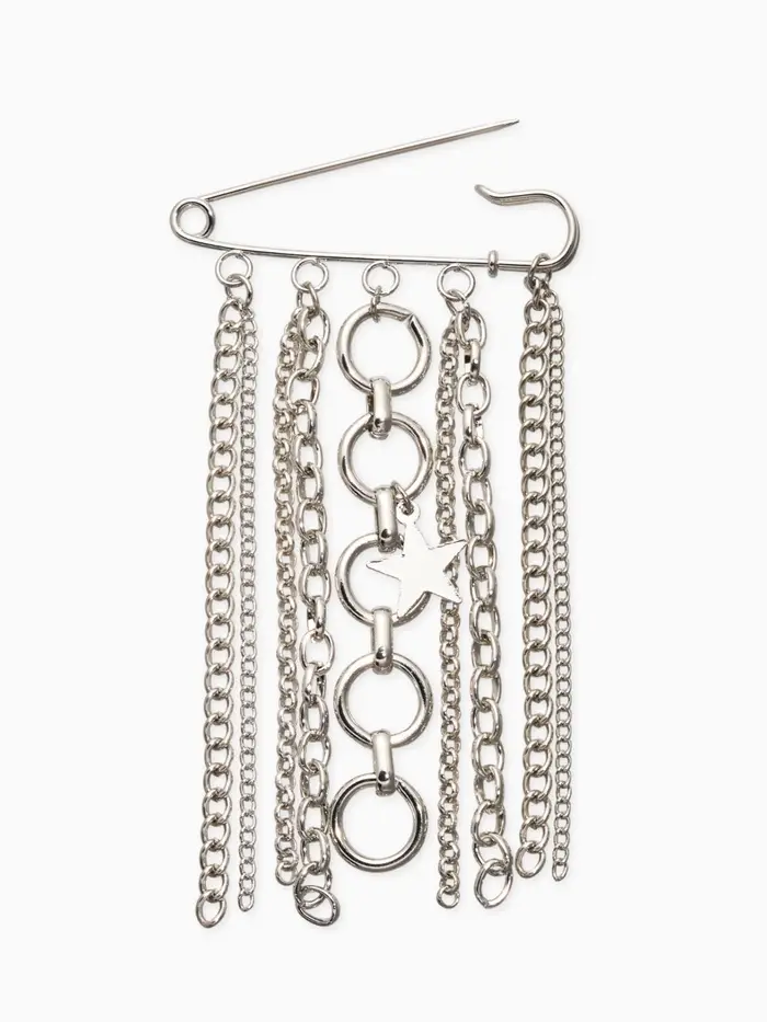 Булавка с подвесами "Звезды", цвет серебро L=6см