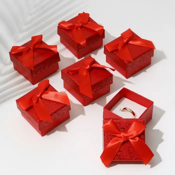 Набор короборчек подарочных 6 шт. под кольцо "Блестящие сердца", 5*5, цвет красный (1037512) 10949