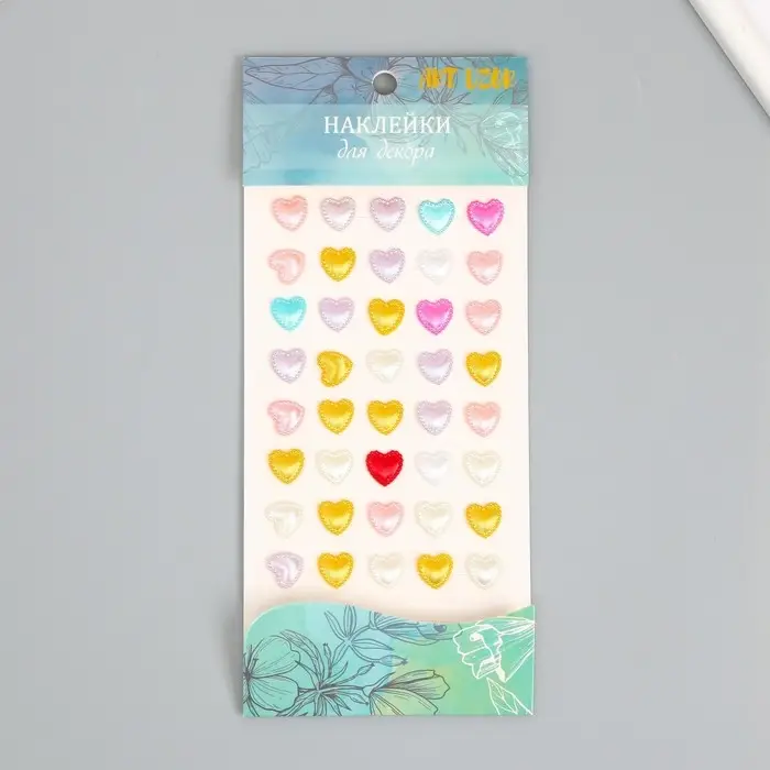 Наклейка пластик стразы "Сердечки-кристаллы с рисунками" 1,1х1,1 см МИКС 23х9,5 см