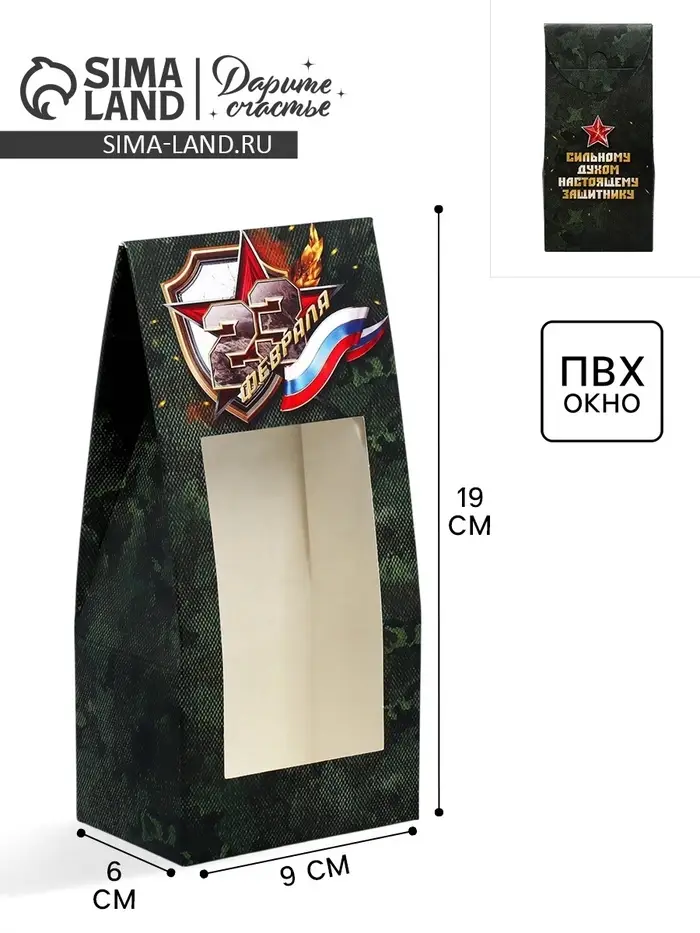 Коробка кондитерская складная, упаковка «23 февраля», 9 х 19 х 6 см
