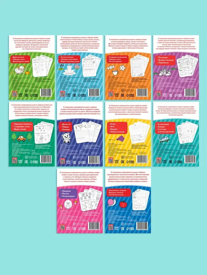 Набор книг "Прописи для малышей и дошкольников "Собираемся в школу", 10 книг.