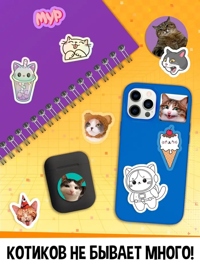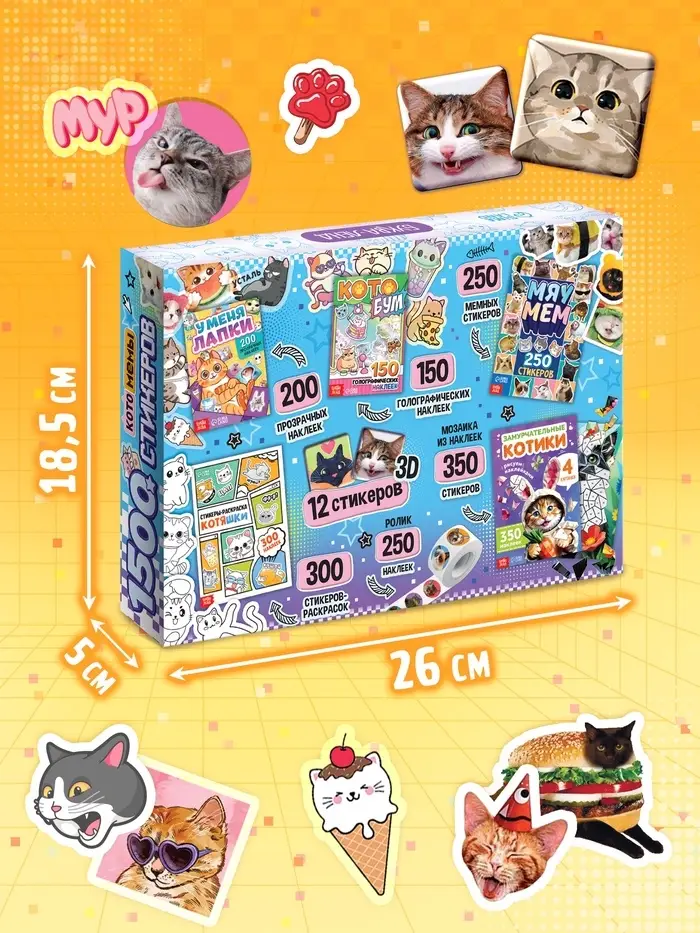 Книжное комплектное издание «Котомемы. 1500 стикеров», 5 книг, ролик, 3д стикеры