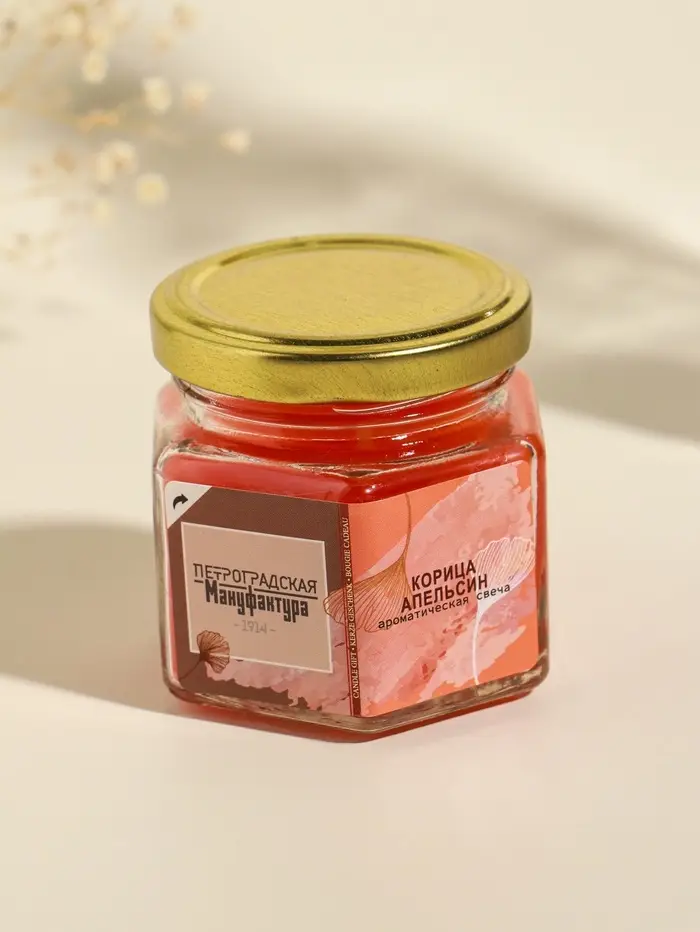 Свеча ароматическая в банке 70 гр воска, корица+аплеьсин