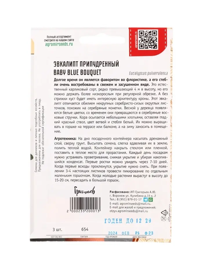 Семена Эвкалипт Baby Blue Bouquet припудренный 3шт. / НОВИНКА 12.29 г.