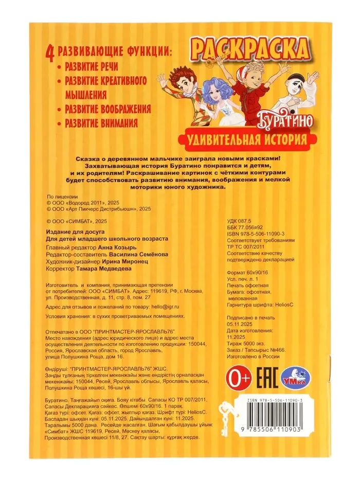 Раскраска «Буратино. Удивительная история», 16 стр.