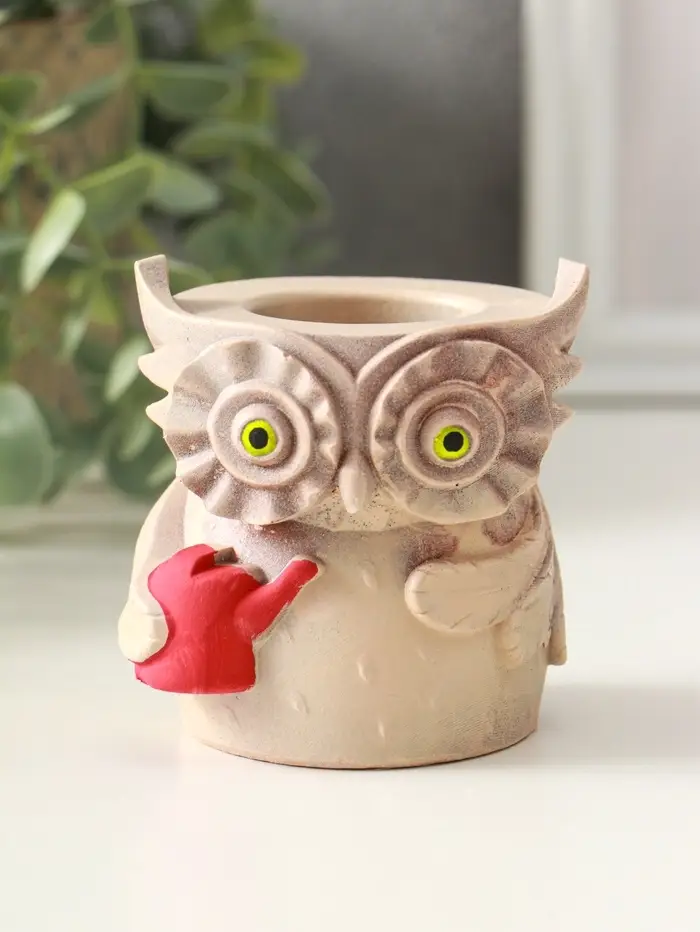 Карандашница "Сова с лейкой", 8х8 см, гипс, слоновая кость