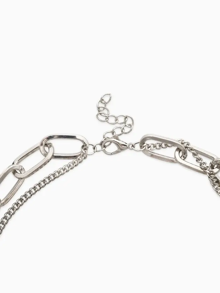Кулон на цепочке крупное вытянутое звено 2 яруса "Сердечки", цвет серебро