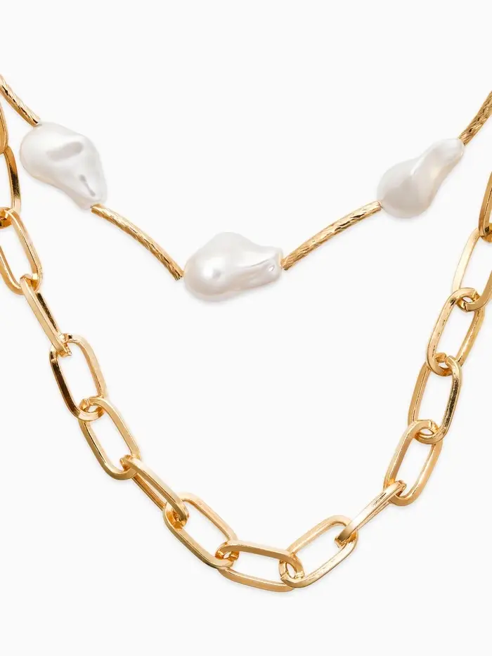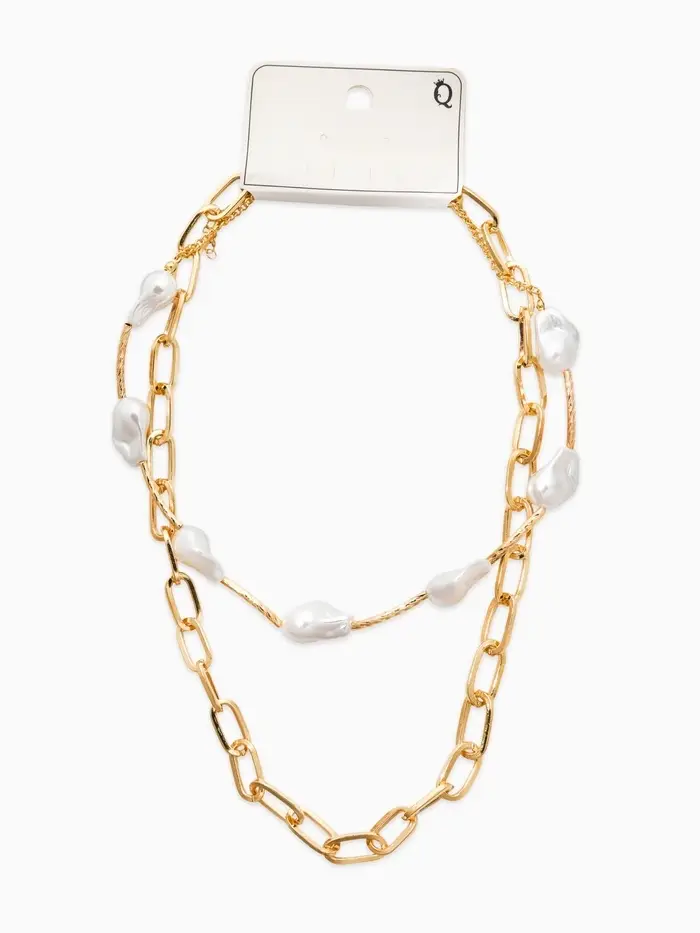 Колье "Жемчуг" борокко, цепь, 2 яруса, цвет белый в золоте