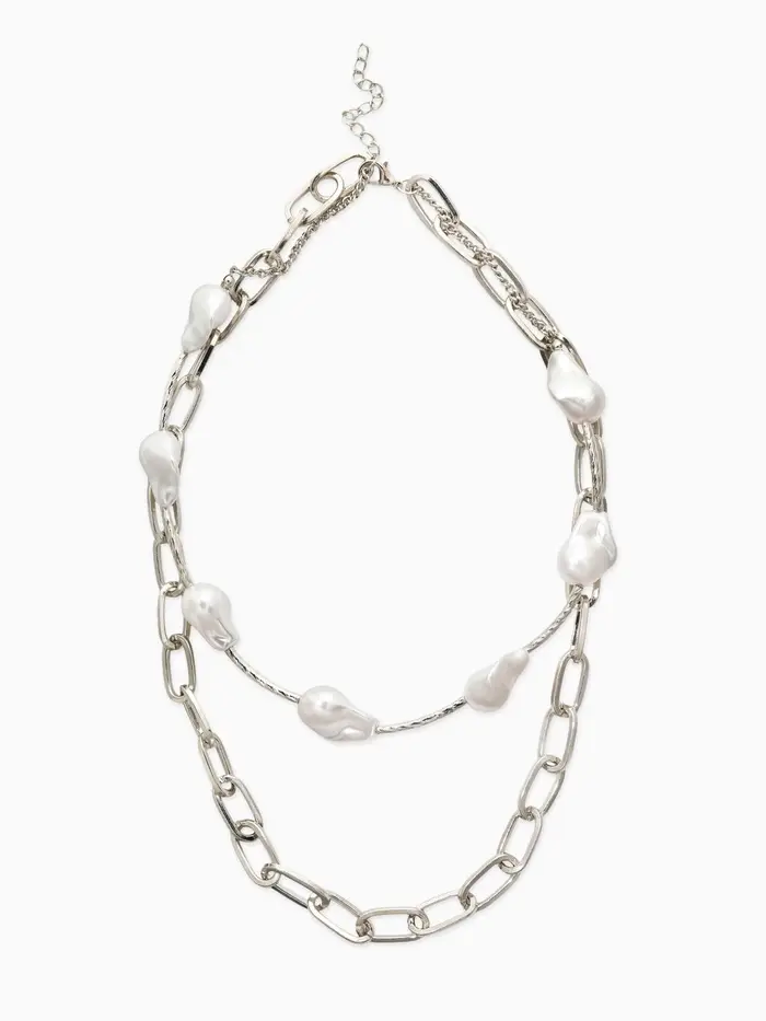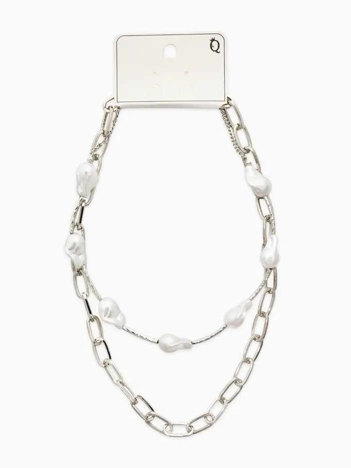 Колье "Жемчуг" борокко, цепь, 2 яруса, цвет белый в серебре