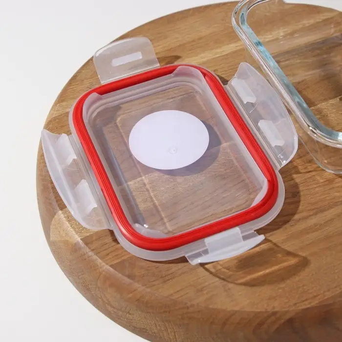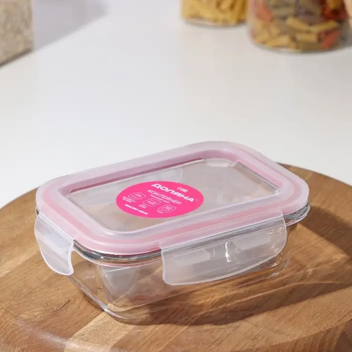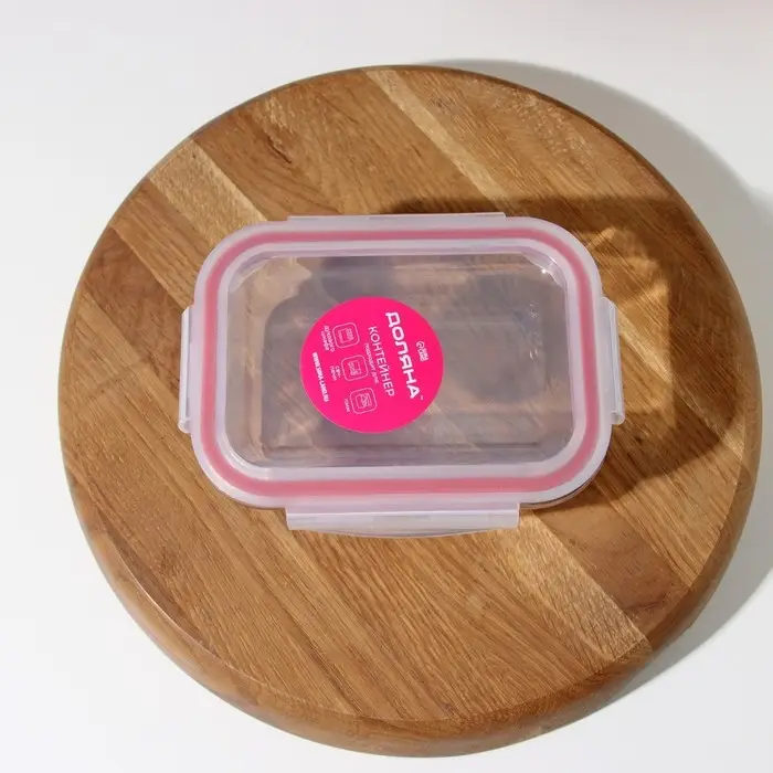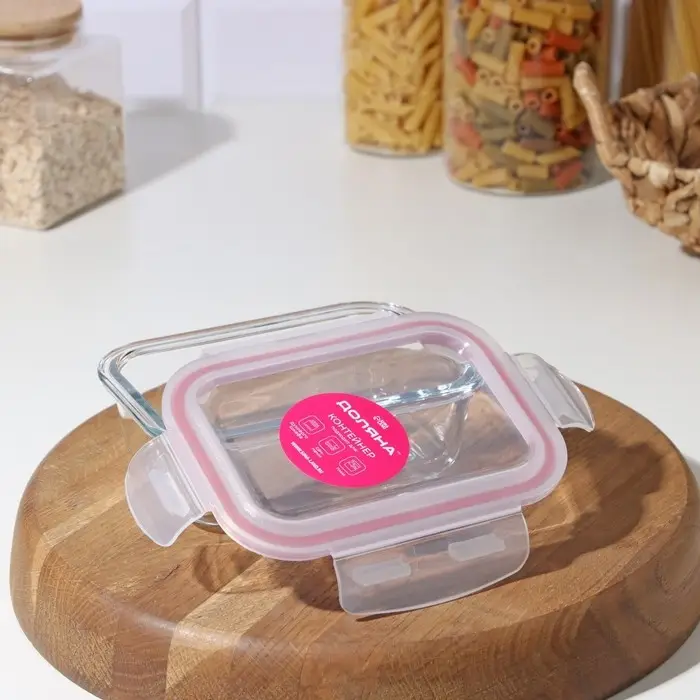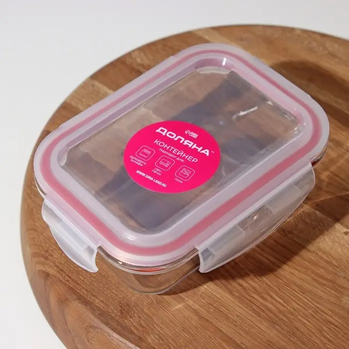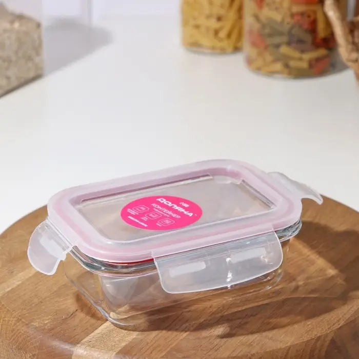 Удобный и вместительный стеклянный контейнер Доляна для хранения, разогрева и переноски продуктов. Прекрасно подойдет для использования в дороге или в офисе.