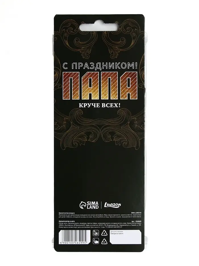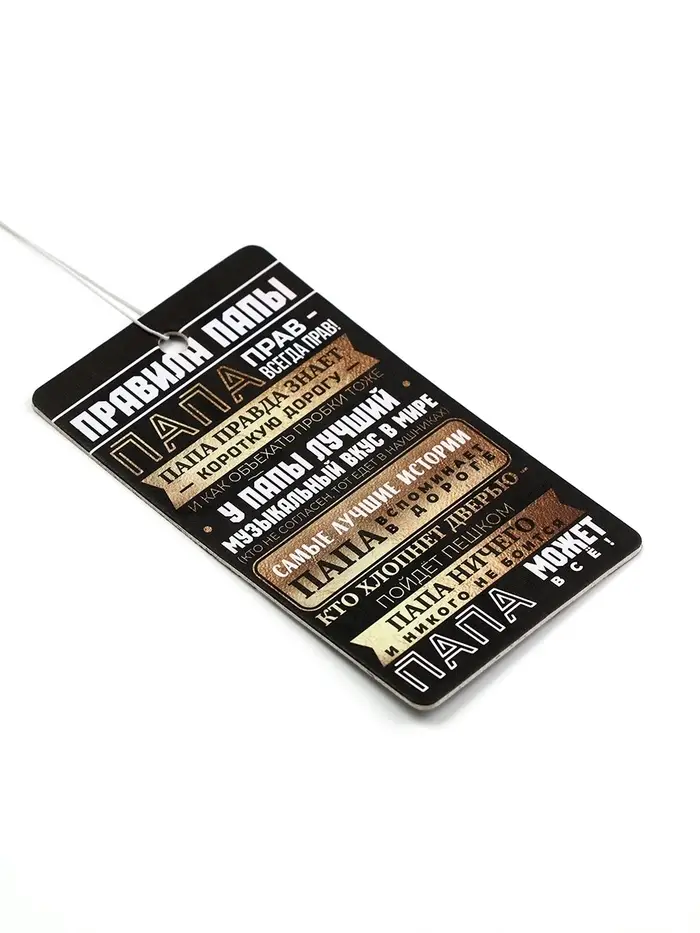 Каждый автомобильный ароматизатор предоставляется в простой, но красивой, подарочной и оригинальной упаковке. Подвесьте ароматизатор в салоне авто или в багажнике, под сиденье. Специальный картон пропитан парфюмерной композицией и источает приятный аромат, который охватит окружающее пространство и будет успокаивать и одновременно помогать оставаться бдительным.
