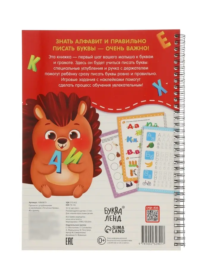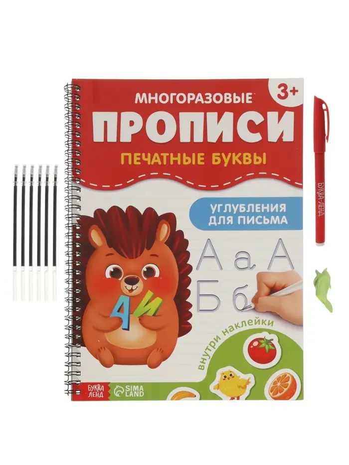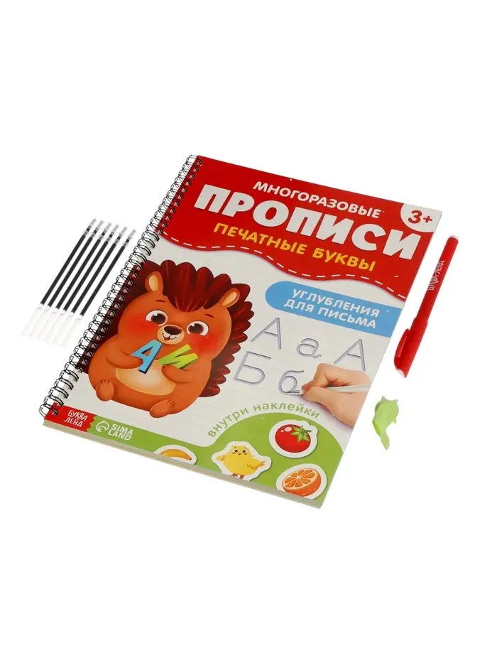 Прописи с углублениями и наклейками "Печатные буквы", 40 страниц,