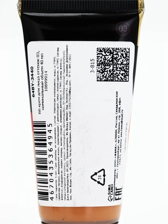 BB крем для лица оттенок 03, 40 мл (Естественный)