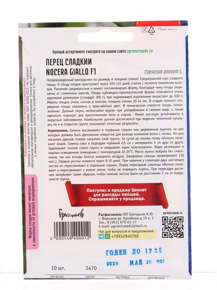 Семена Перец сладкий Nocera Giallo F1 10 шт. 12.29 г.