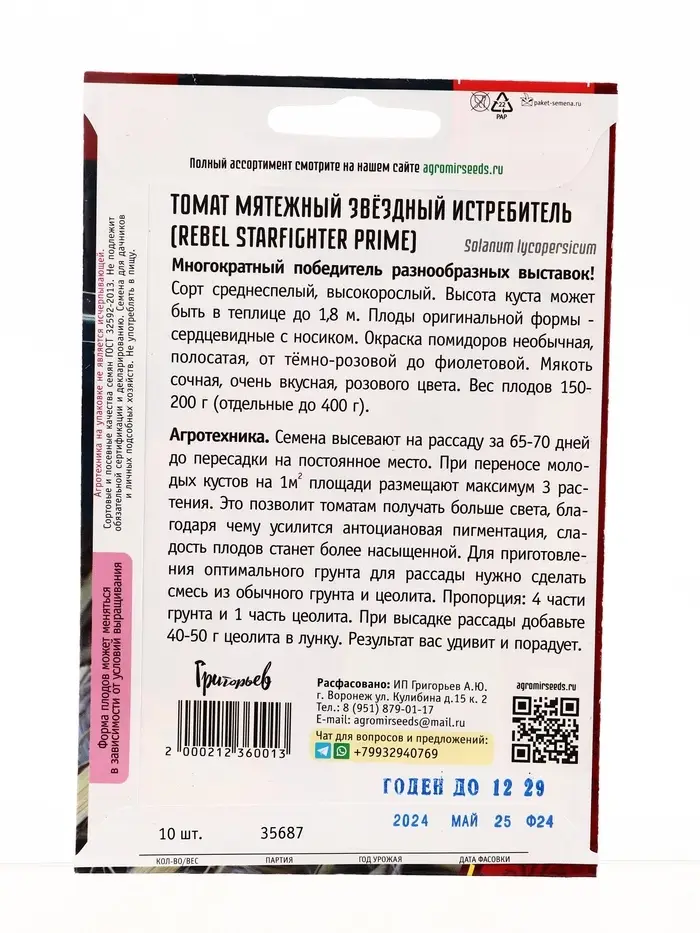 Семена Томат Мятежный Звёздный Истребитель (Rebel Starfighter Prime) 10шт. 12.29 г.