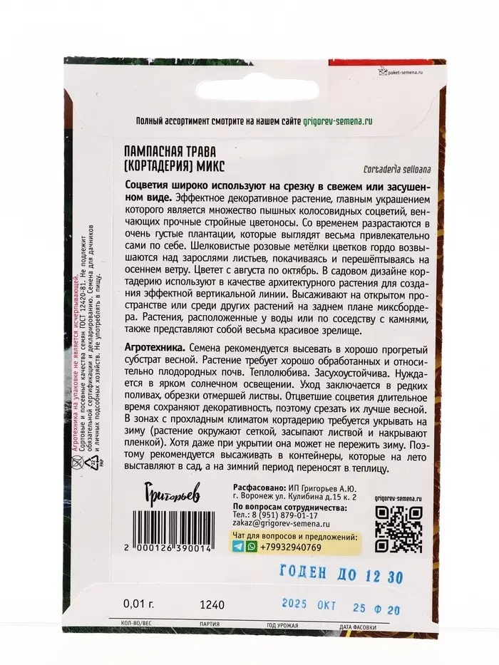 Семена Пампасная трава Микс (Кортадерия) 0,01г. 12.29 г.