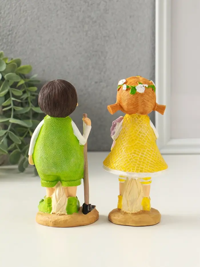 Сувенир полистоун "Малышка и мальчишка вафельные наряды" набор 2 шт 5,7х6,8х15 см
