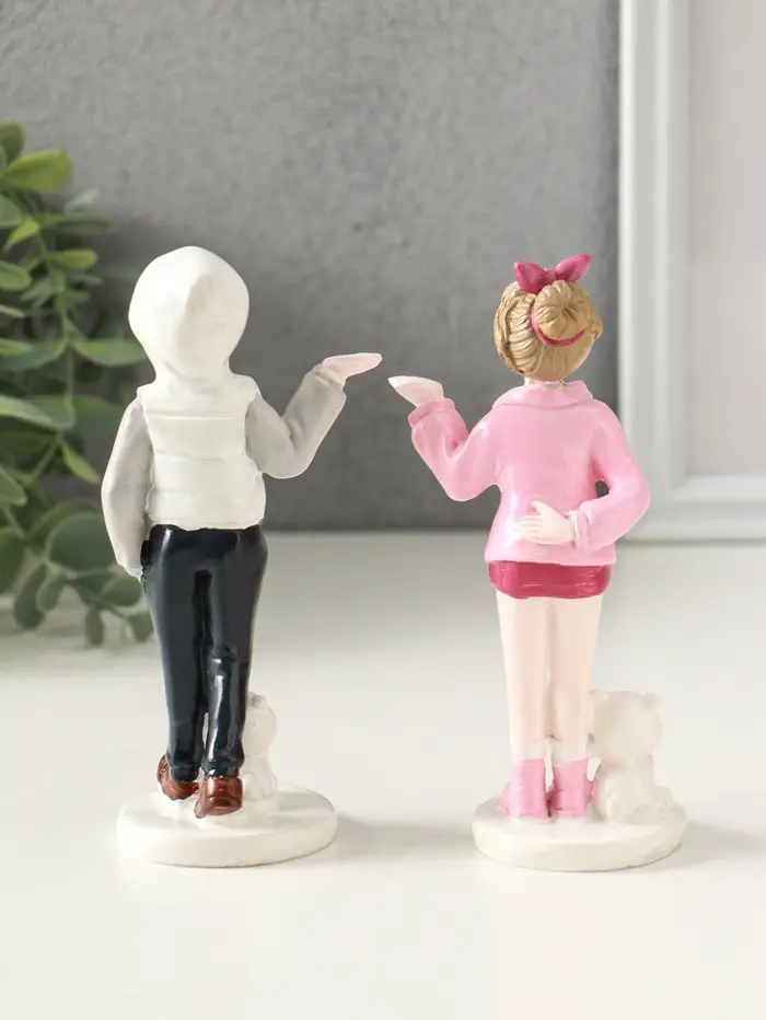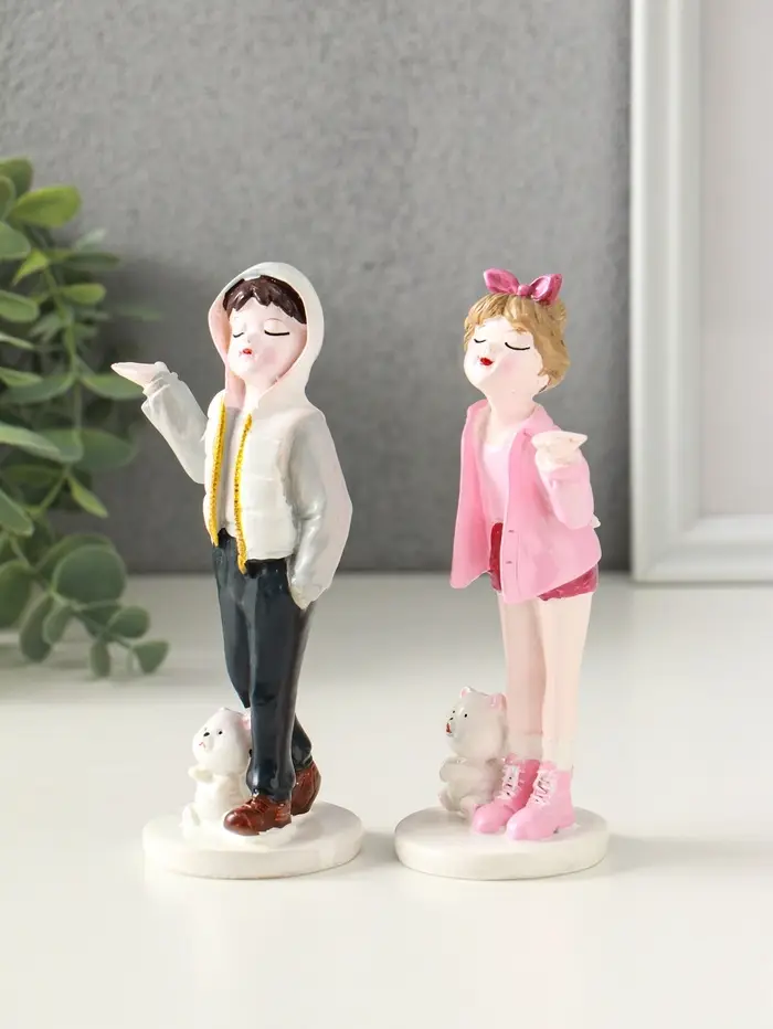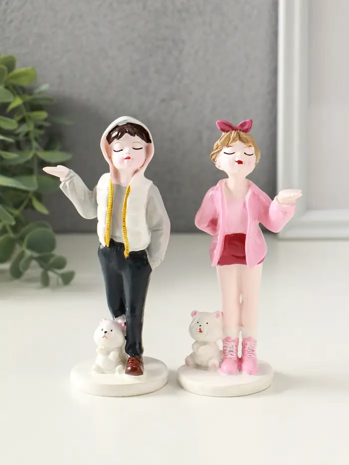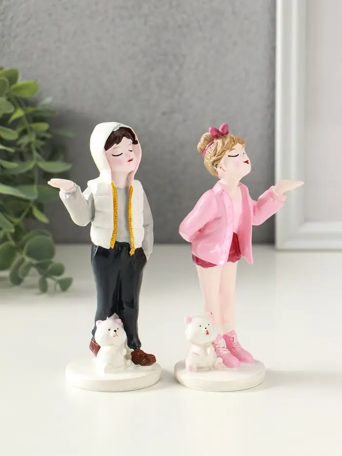 Сувенир полистоун "Подростки с мишками" набор 2 шт 5,2х6,5х14,5 см