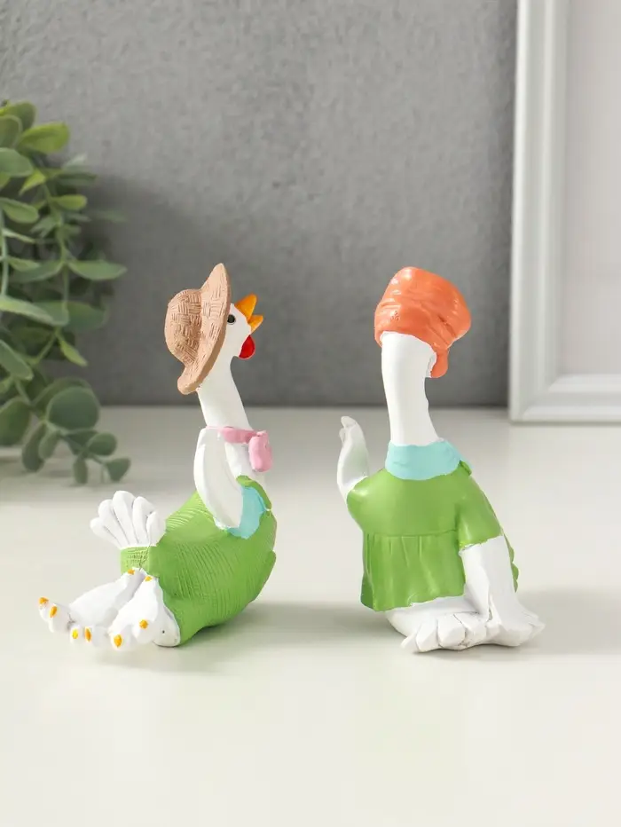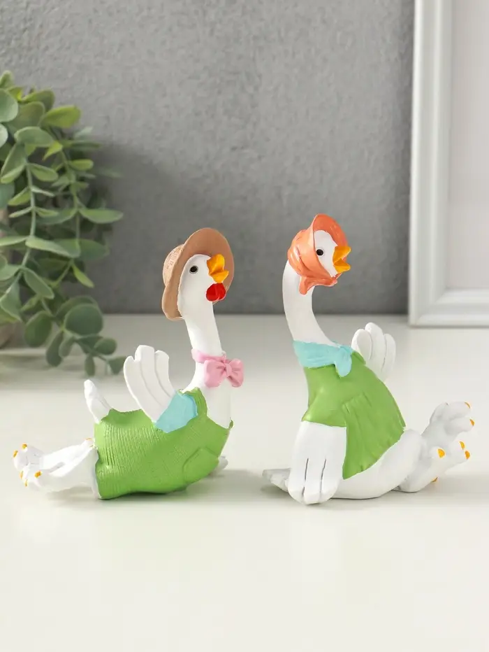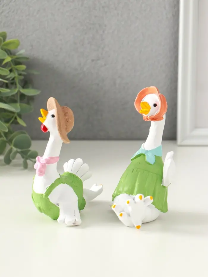 Сувенир полистоун "Гусь и гусыня в зелёных нарядах" набор 2 шт 6х11х11,7 см