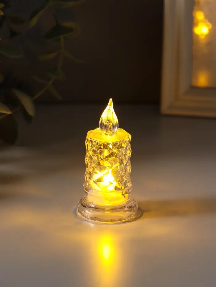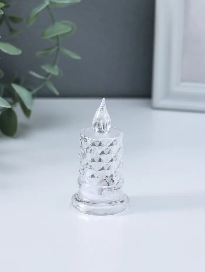 Светодиодная свеча LED "Свеча с подтёками, грани" 3хLR41, прозрачный 3,5х3,5х7 см