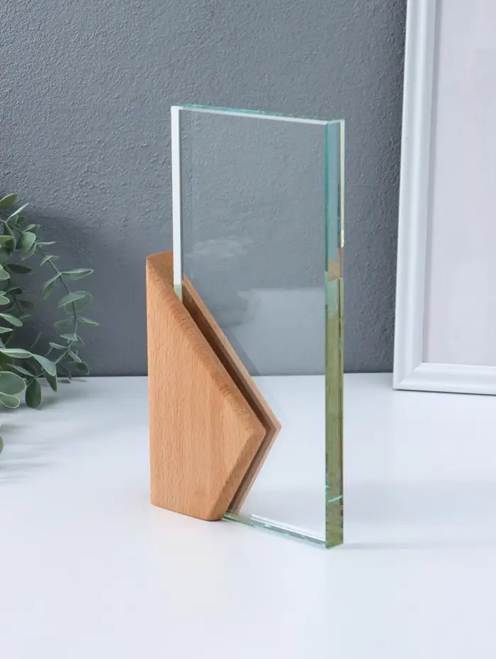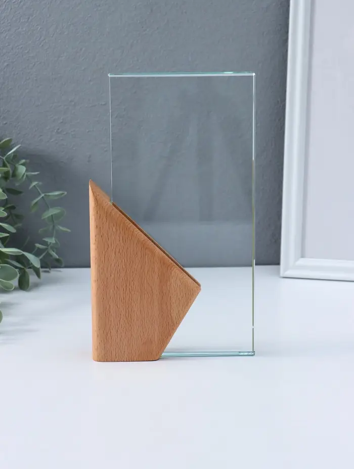 Стела наградная стекло, дерево "Геометрия" верх 23х11,5 см низ 15х9,3 см 3,5х13х23 см