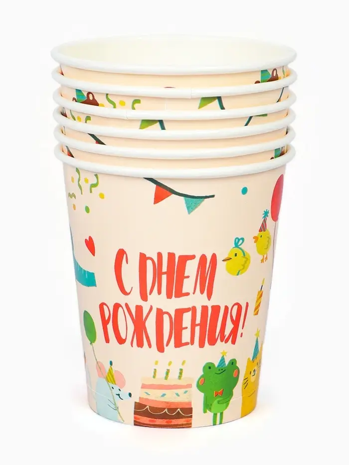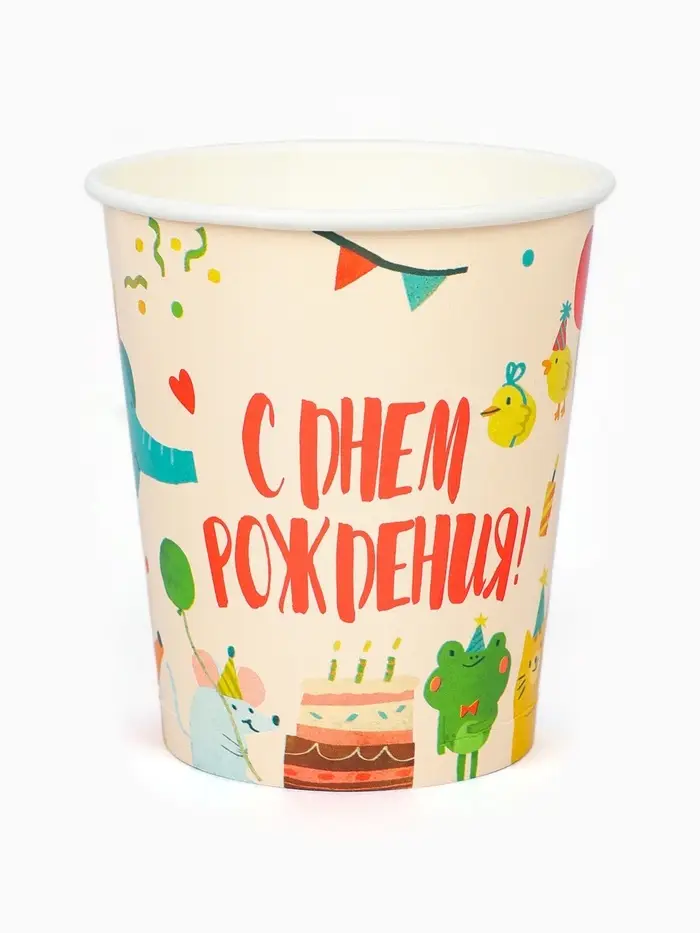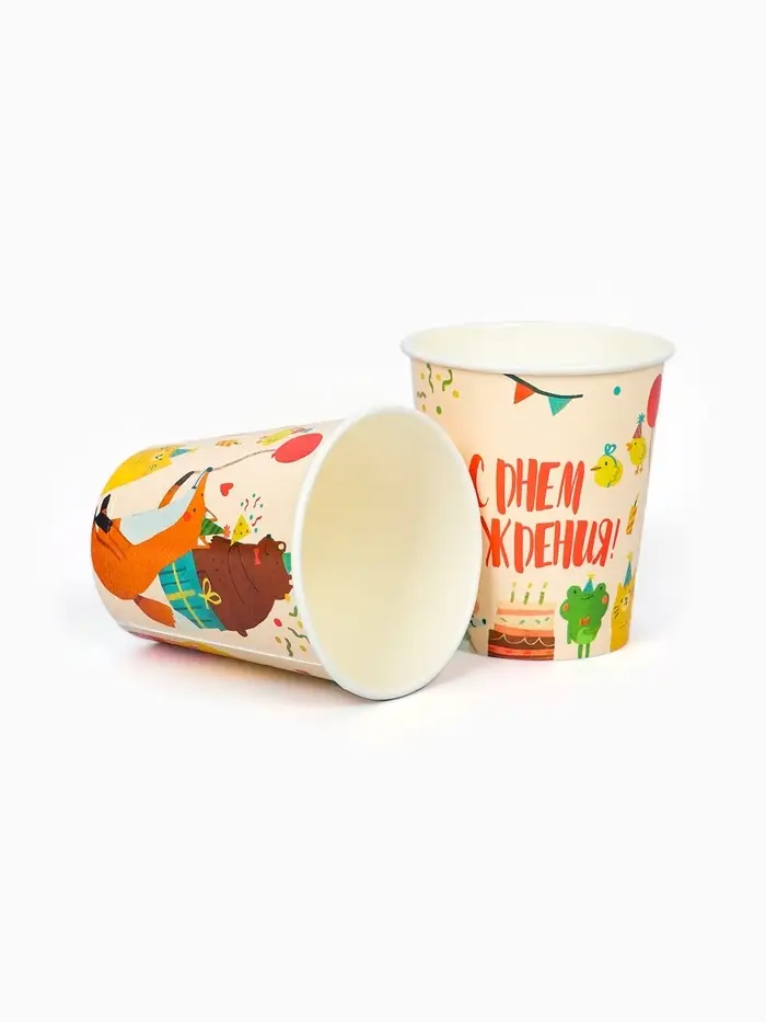 Стакан одноразовый бумажный «Животные», 250 мл