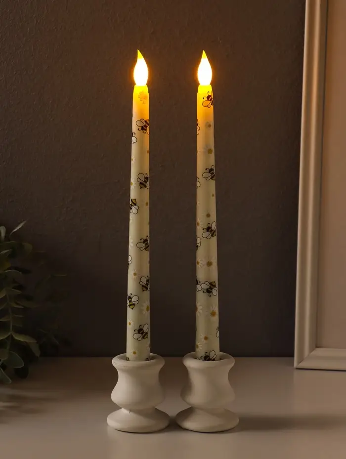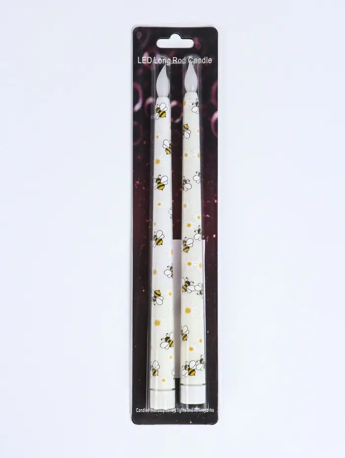 Свечи светодиодные "Античные. Ромашки и пчёлки" набор 2 шт 2хААА 2х2х27,5 см 2,5х7х32 см
